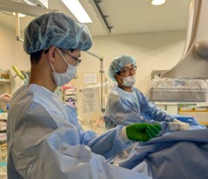 今回は3症例で、高度石灰化SFA+BK症例、SFAのCTO、SFAのステント閉塞という厳しい症例ばかりでしたが、最終的には見事に成功させていました。循環器内科の若手も積極的に助手に入り、達人の手技を間近で見ることができました。この学びを忘れないうちに、次の自分の手技で生かしてもらえると思います。